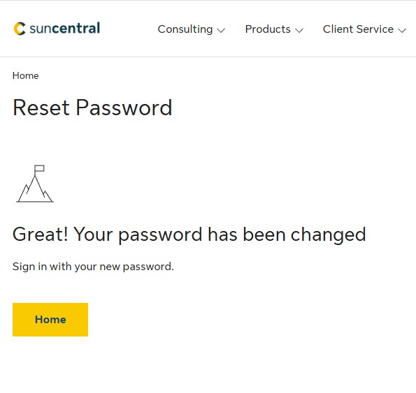 Step 5: You will receive a confirmation message letting you know your password has been changed You can now go to the Suncentral homepage and login using your access ID and password.